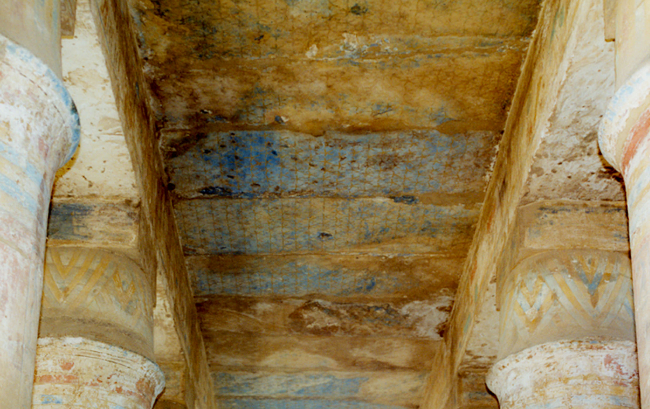 Die Decke des Festsaals von Thutmosis III. wird von zwei Reihen à 10 Säulen und einer Reihe aus 32 Pfeilern getragen. Ein großer Teil seiner vielfarbigen Verzierungen ist erhalten geblieben.
