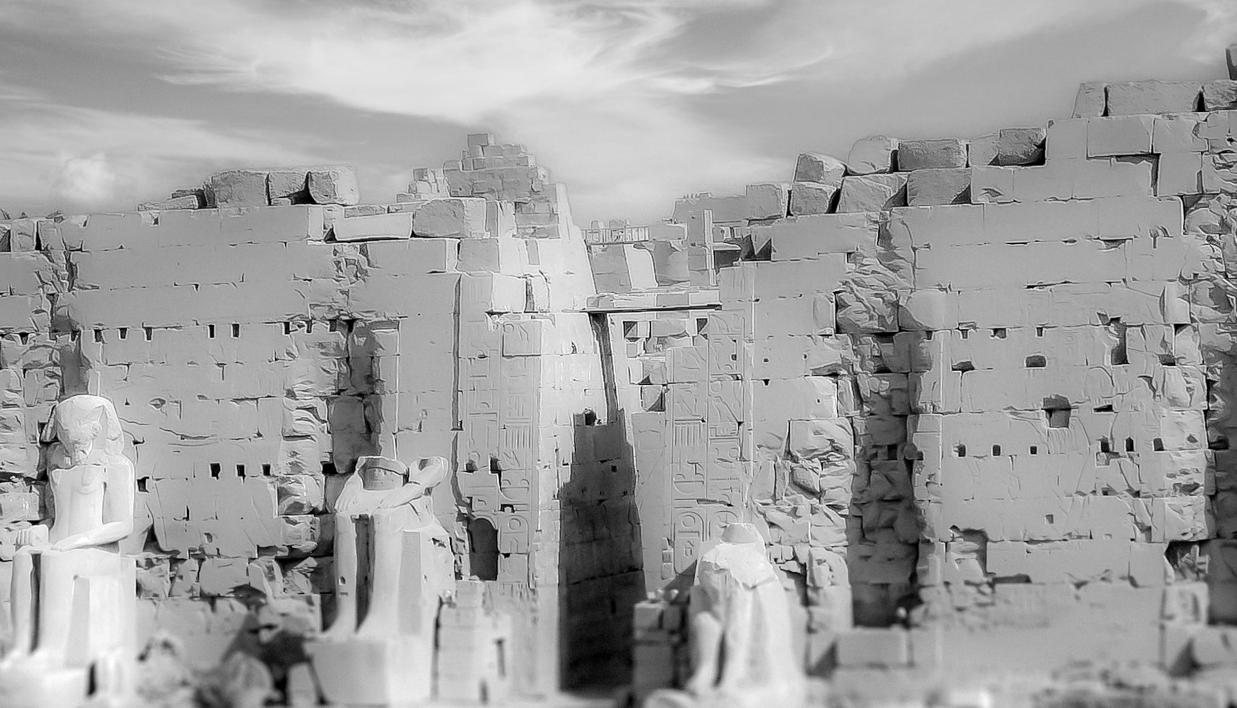 Der Tempel, umgeben von einer hohen Mauer aus ungebrannten Ziegeln, war kein Ort, wo Gläubige sich versammelten. Vielmehr war er eine heilige Stätte, an der geheimnisvolle Zeremonien nach festen und komplexen Ritualen abgehalten wurden, um den Zusammenhalt des Universums zu sichern. Heute sind die Tempel von Karnak UNESCO Weltkulturerbe. Die Ägypter sahen von dem Tempel lediglich mächtige Tore und abweisende Mauern. Was hätte sie mehr beeindrucken können?.