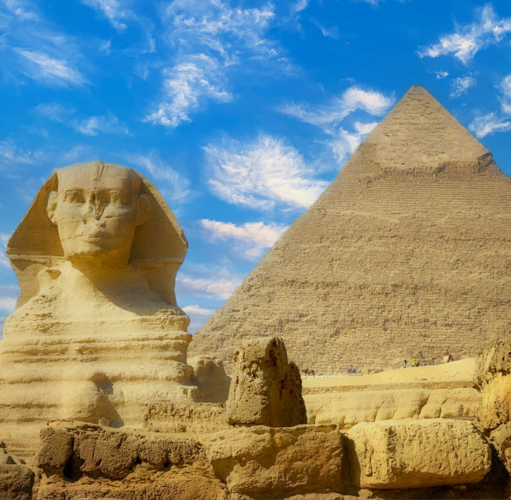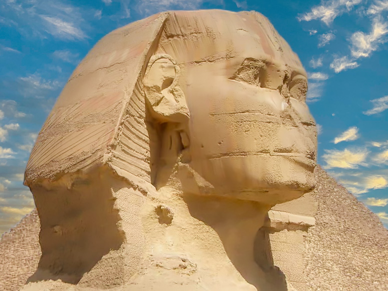 | Seine schwersten Zerstörungen erlitt der Sphinx unter den Mameluken, die ihn als Schießscheibe benutzten, viele sagen auch, es wären die Türken gewesen, und vor allem in jüngerer Zeit aufgrund von aufsteigendem Grundwasser nach der Regulierung durch den Assuan-Damm. Über das Alter der Sphinx gehen die Meinungen der Forscher weit auseinander, wir schließen uns der gängigen Lehrmeinung an. Sie besagt das Pharao Chephren um 2520 v.u.Z. den Steinkoloß errichten ließ. Da keine schriftlichen Zeugnisse von der Erbauung oder der Funktion gefunden worden, bleibt das Geheimnis der Sphinx ungelöst. |